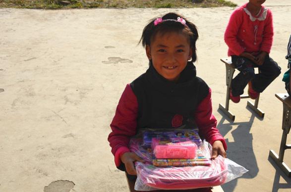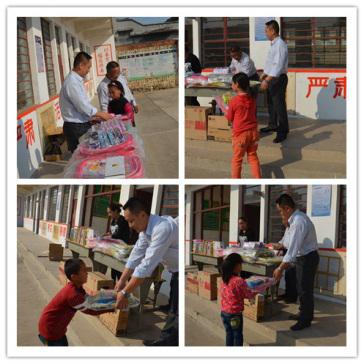 千家崗小學(xué)的老師們用他們最隆重的方式表示了對(duì)我們的歡迎,孩子們排排坐,一個(gè)一個(gè)期待又充滿童真的眼神讓我們頓覺(jué)責(zé)任感重大。在學(xué)校老師的安排下,孩子們一個(gè)一個(gè)小心翼翼又很緊張的接過(guò)我們?yōu)樗麄兙臏?zhǔn)備的禮物。漂亮的書(shū)包,精致的文具,可以畫(huà)出自己夢(mèng)想的水彩筆,帶他們走出大山的書(shū)中的世界?;蛟S他們現(xiàn)在還不會(huì)思考他們以后的路要怎么走,或許他們也還不是很理解怎么突然有叔叔阿姨們來(lái)為他們送上精美的文具和書(shū)籍。但是,他們熠熠奪目的神采里,小心翼翼的動(dòng)作里,我們看到了孩子們的激動(dòng)和喜悅。或許一個(gè)漂亮的書(shū)包,也會(huì)成為他們童年記憶里一筆珍貴的財(cái)富。我們只希望孩子們帶著我們的愛(ài),堅(jiān)強(qiáng)善良的走下去,以后可以傳遞更多愛(ài)和力量。