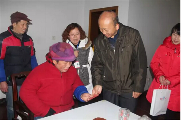 1月22日,雪紛紛揚(yáng)揚(yáng)的下,常州青之峰螢火蟲(chóng)愛(ài)心社不忘扶貧幫困的傳統(tǒng),延續(xù)著愛(ài)心奉獻(xiàn)的精神。在公司副總經(jīng)理吳學(xué)泓的帶領(lǐng)下,與常州晚報(bào)的記者一同來(lái)到鐘樓區(qū)藍(lán)天社區(qū)轄內(nèi)的10戶(hù)困難家庭進(jìn)行慰問(wèn)。在社區(qū)工作人員的帶領(lǐng)下,我們首先來(lái)到王建龍家,社區(qū)工作人員介紹說(shuō),這戶(hù)家庭夫妻倆都是智力殘疾,有一女兒正在上大學(xué),而大學(xué)的學(xué)費(fèi)成為家庭的沉重負(fù)擔(dān)。當(dāng)我們抵達(dá)王先生家時(shí),他還在外面上班,而他的妻子正冒著大雪在外收撿廢品,就連他的女兒,放寒假了還堅(jiān)持在外打工。環(huán)顧四周,家徒四壁,只有一臺(tái)由社區(qū)贈(zèng)送的電視和冰箱,破舊不堪的居住環(huán)境,仿佛向我們?cè)V說(shuō)這家主人的艱難。王阿姨十分感謝我們送去的慰問(wèn)金,螢火蟲(chóng)愛(ài)心社的小伙伴們也不斷鼓勵(lì)王阿姨要保持健康的心態(tài),積極面對(duì)挫折。