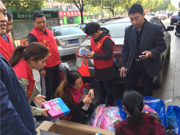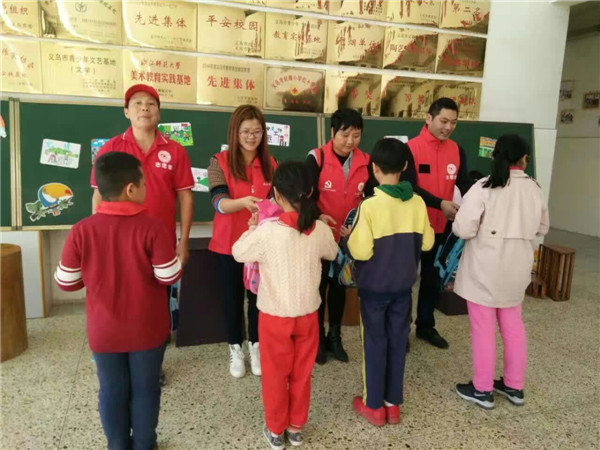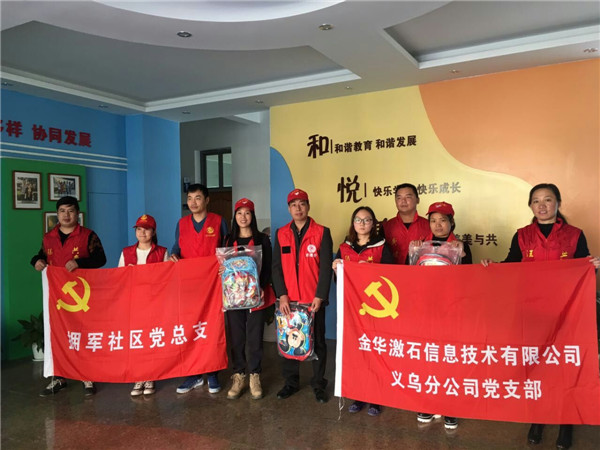 11月4日,青峰激石黨支部在義烏市民政局、市教育局的組織下,聯(lián)合城市有愛愛心公益組織、擁軍社區(qū)黨總支、幸福里園區(qū)黨支部、錦都社區(qū)黨支部開展11月份黨員義務(wù)活動。青峰激石螢火蟲愛心社的成員們與義務(wù)黨員一同參與愛心活動,為義烏市8所小學35名貧困學生送去書包、鉛筆、文具盒、卷筆刀等愛心禮品。