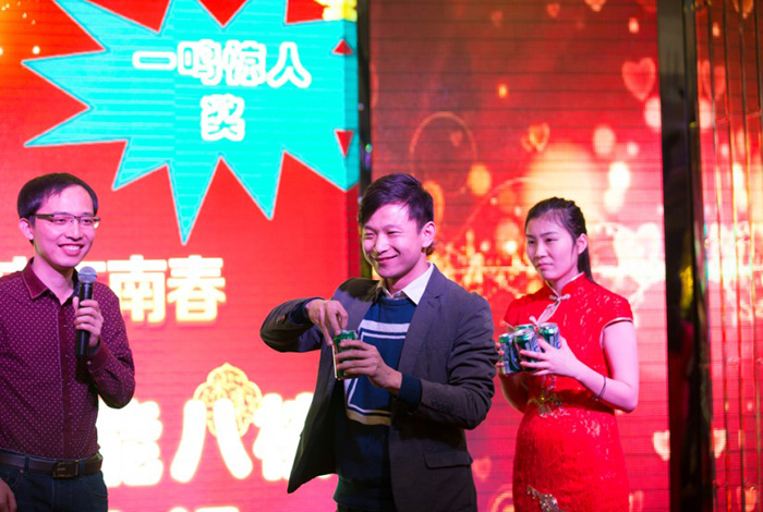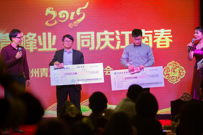晚會(huì)現(xiàn)場(chǎng),青峰集團(tuán)董事長(zhǎng)兼青之峰CEO余進(jìn)先生致開(kāi)場(chǎng)詞,肯定了公司全體員工在過(guò)去一年辛苦付出,同時(shí)對(duì)新的一年做出了自己的展望。接下來(lái)進(jìn)行的文藝演出精彩紛呈,企管部和網(wǎng)站客服部聯(lián)袂表演的《鴨梨大》開(kāi)場(chǎng)舞,將現(xiàn)場(chǎng)氣氛帶動(dòng)了起來(lái);銷售部小品《土豪交友會(huì)》和百度客服部小品《全民互聯(lián)網(wǎng)》以搞笑的表演和雷人的情節(jié)讓大家捧腹不已。歌曲《fantastic baby》、《遇見(jiàn)》、《海闊天空》等唱出了大家的幸福滿足和對(duì)2015年的美好憧憬。青之峰二代帶來(lái)的走秀表演《繼承者們》更是展現(xiàn)了青之峰的朝氣和未來(lái)的希望。青之峰精英們美輪美奐,熱情奔放,激情四射的表演給到場(chǎng)的領(lǐng)導(dǎo)、嘉賓和全體員工帶來(lái)了一場(chǎng)震撼的視聽(tīng)盛宴。