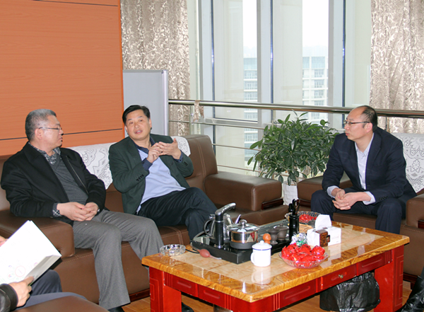 鄒局長(zhǎng)(右二) 、荊總(右一)向梁主任介紹情況