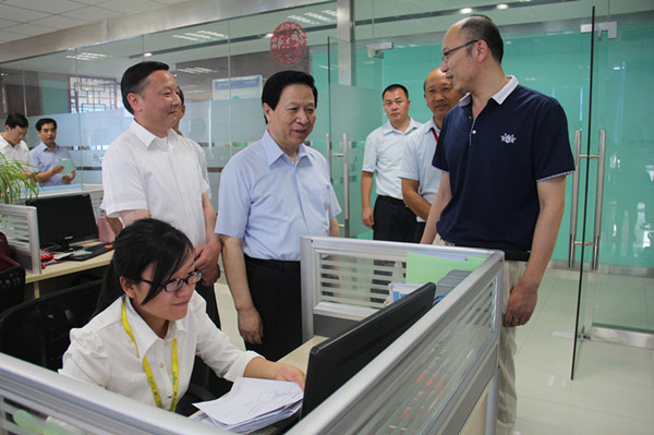2015年8月3日下午,前江蘇省委書記、省人大常委會主任梁保華先生,在科教城領(lǐng)導(dǎo)的陪同下蒞臨常州市青之峰網(wǎng)絡(luò)科技有限公司參觀考察。青之峰荊總和副總經(jīng)理吳學(xué)泓先生對來訪領(lǐng)導(dǎo)表示熱烈歡迎,并帶領(lǐng)領(lǐng)導(dǎo)深入工作現(xiàn)場視察各項工作。