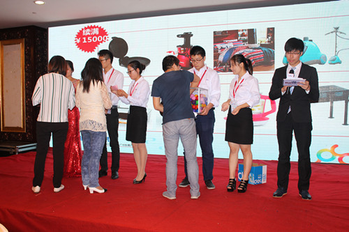 客戶企業(yè)家們爭先恐后地上臺(tái)參與互動(dòng)游戲