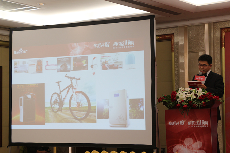 會議在萬眾期待中開始,上半場會議中,百度高級講師李忠強(qiáng)為到場的客戶介紹了2015年百度推出的創(chuàng)新產(chǎn)品百度產(chǎn)品直通車,結(jié)合2015年大數(shù)據(jù),闡述了企業(yè)該如何做好互聯(lián)網(wǎng)營銷。讓與會的企業(yè)家朋友們更加深入的了解互聯(lián)網(wǎng)營銷新知識,也更加堅定了百度推廣之路。