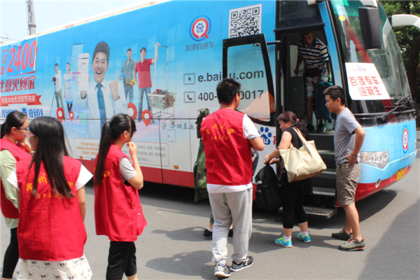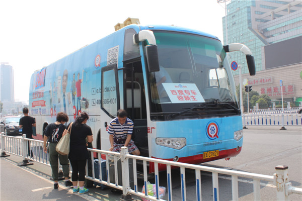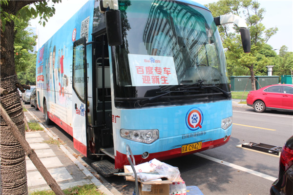 9日上午,百度迎新專車已準(zhǔn)備就緒,整裝待發(fā)……