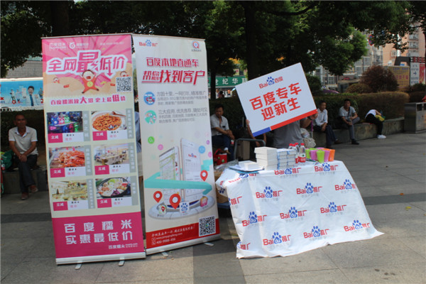 活動中,我們聯(lián)合百度糯米及大學(xué)城周邊的商戶,在火車站、汽車站附近免費為學(xué)生提供飲用水以及茶杯、牙刷等小禮品,為新生們推出糯米新生團(tuán)購套餐。