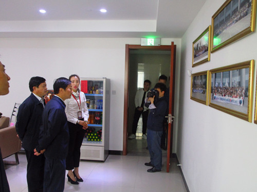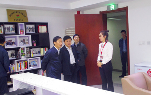 王加培書記在張井花經(jīng)理的陪同下參觀公司員工工作