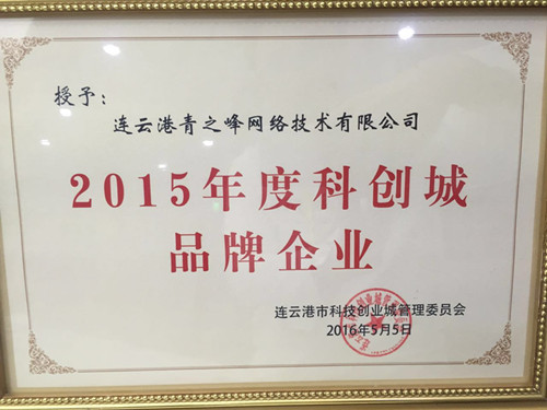 連云港市青之峰網(wǎng)絡(luò)技術(shù)有限公司自2014年11月入駐科創(chuàng)城以來,得到科創(chuàng)城領(lǐng)導的關(guān)懷與照顧并榮獲了“2015年度科創(chuàng)城品牌企業(yè)”的稱號。2016年5月11日,科創(chuàng)城張思霞部長親自來公司頒發(fā)榮譽證書。獲得此稱號,是連云港科創(chuàng)城對連云港青之峰在2015年度發(fā)展的肯定,也是對所有連云港青之峰員工一年努力的認可。在新的一年里,我們青之峰必將更加努力,不斷鞭策自己,在發(fā)展的道路上不斷進步。