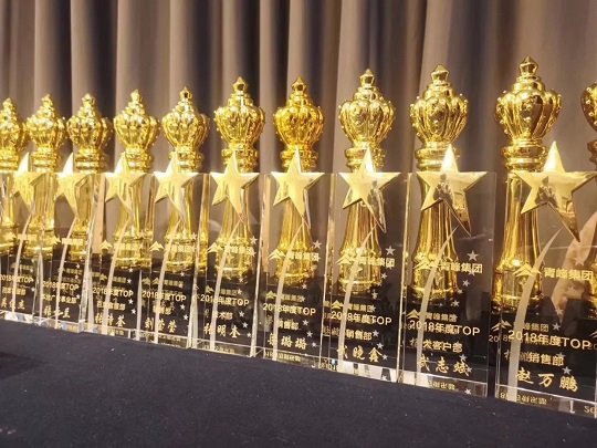 青峰集團(tuán)副總裁黃偉為年度TOP精英頒發(fā)獎(jiǎng)杯及榮譽(yù)證書