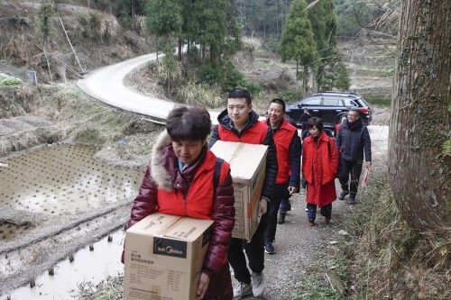 2019年10月18日的上午,一輛載滿生活必需品的車輛迎著朝霞從泰州市青之峰公司出發(fā),經(jīng)過十多分鐘的鄉(xiāng)間小路到達目的地——泰州市醫(yī)藥高新區(qū)野徐社區(qū),在這里,我們將為19戶困難戶家庭送去溫暖。生活必需品放滿了兩張桌子~ 愛老、尊