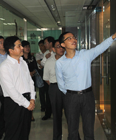 9月29日,常州青之峰迎來貴賓——聯(lián)創(chuàng)科技集團股份有限公司董事長孫力斌先生、副總裁屠萍萍女士,常州市市民卡建設(shè)有限公司總經(jīng)理路晉平先生,蒞臨常州青之峰參觀調(diào)研,常州科教城黨工委徐光輝書記、科教城管委會許小波主任等科教城領(lǐng)導陪同參觀。青峰集團董事長余進先生對來賓表示熱烈歡迎,并帶領(lǐng)領(lǐng)導深入工作現(xiàn)場考察各項工作。青峰集