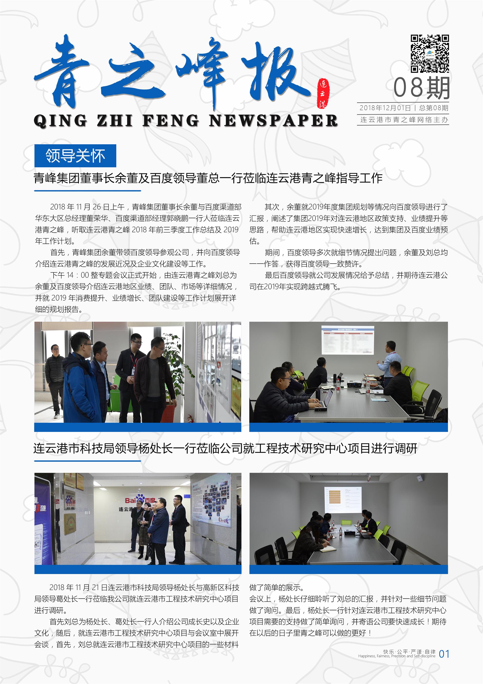 數(shù)據(jù)大廈12樓1201室 | 0523-80696888 | 泰州青之峰 12.24.2018 企管部 王蓉 泰州市青之峰網(wǎng)絡(luò)科技有限公司 為深入貫徹落實(shí)中央統(tǒng)戰(zhàn)工作會(huì)議和全國、全省新的社會(huì)階層人士統(tǒng)戰(zhàn)工作會(huì)議精神,全面加強(qiáng)我市新的社會(huì)階層人士統(tǒng)戰(zhàn)工作,團(tuán)結(jié)凝聚全市新的社會(huì)階層人士的智慧和力量,1日上午